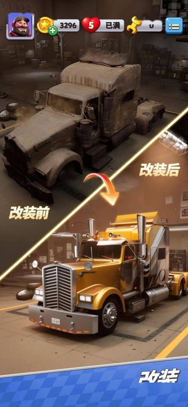 再比如,针对海外男性休闲游戏市场,世纪华通也掏出了一款目标明确的《Truck Star》。这款游戏依然沿用Century Games熟悉的打法,内核是经典三消,外包装则取自欧美卡车改装文化。